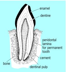 6) 치수를 보호, 법랑질과 백악질을 지지하는 기능