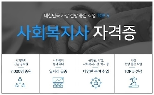 그러다보니 앞으로 5년간 사회복지사 고용 증가도 예상되고 있는 상황입니다. 이 외에도 사회복지사에게 사회복지직공무원 시험 자격이 주어지기 때문에 많은 사람들이 사회복지사2급을 준비하고 있어요.