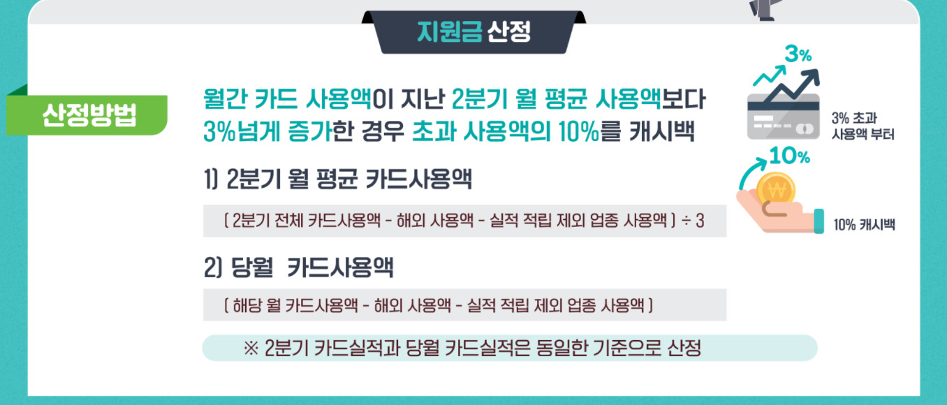 상생 소비지원금을 받기 위해서는 2분기 평균지출액보다 3%이상 사용해야되는데요.