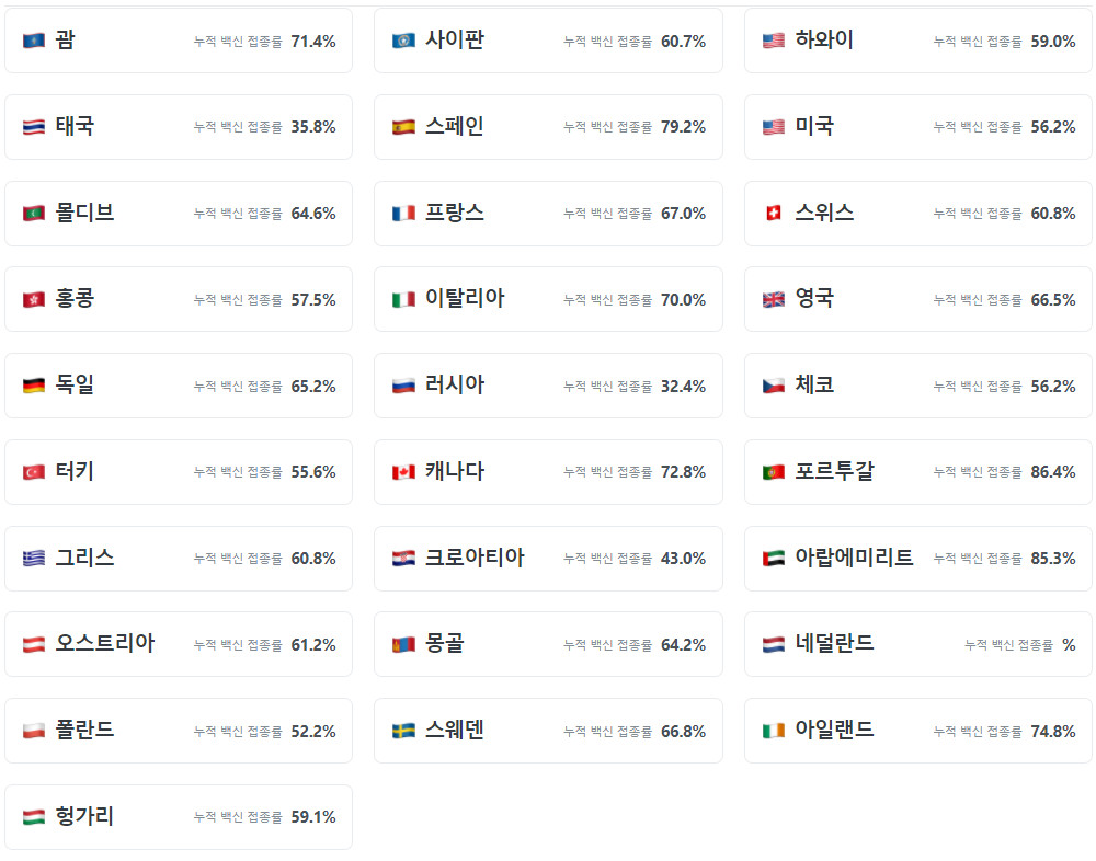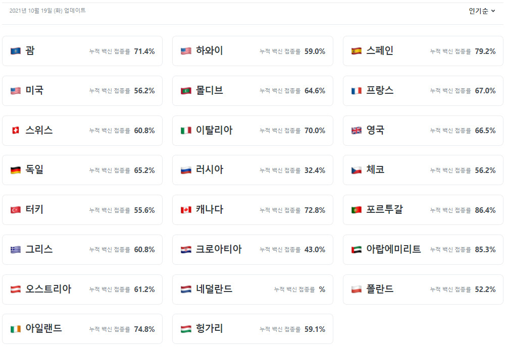 심지어 백신 접종자는 격리가 필요없는 곳도 상당히 많습니다.