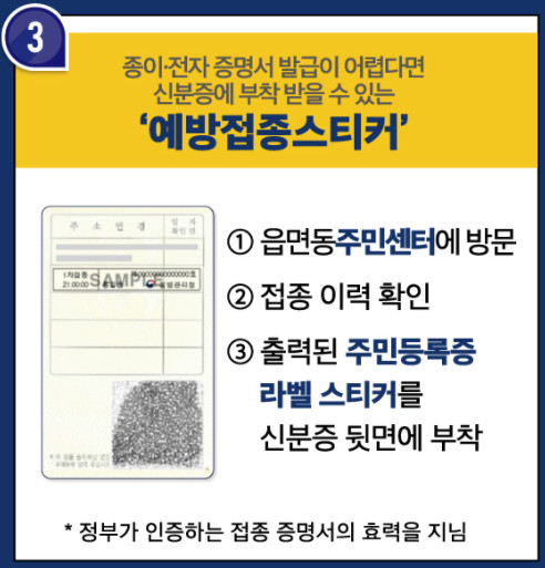 이 또한 주민센터에 방문하시면 백신 접종 이력을 확인하고 라벨 스티커를 신분증에 부착해줍니다.