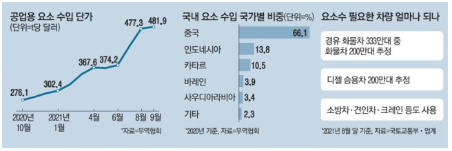 오늘은 요소수 가격 추이에 대해 알아보고, 요소수 대란 파급효과 등을 살펴보겠습니다.
