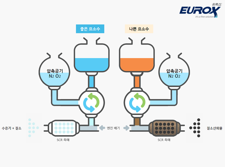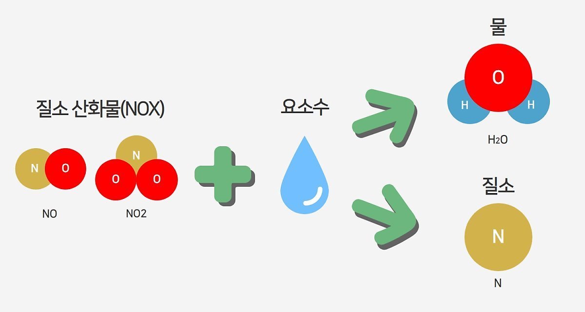 질소산화물의 경우 환경오염뿐만 아니라 발암물질이기도 하기 때문에 요소수를 통해서 반드시 물과 질소로 바꿔줘야합니다.