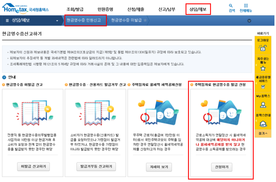 : 임대인에게 현금 영수증 요청 또는 직접 홈택스 홈페이지에서 현금영수증 신청