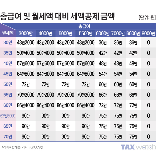 연말정산 월세공제를 세액공제로 받을 경우 소득수준에 따라 공제한도가 다른데요.