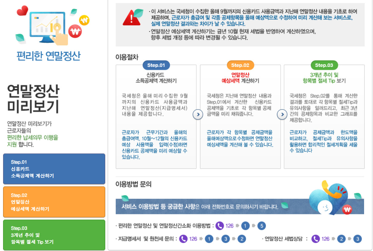 이 서비스를 이용해서 남은 기간동안 어디에 돈을 어떻게 써야 소득공제 및 세액공제를 최대한 받을 수 있는지 알 수 있습니다.