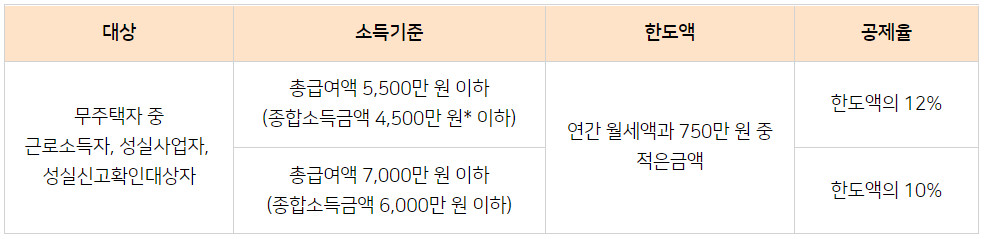 2) 종합소득 4,500~6,000만원 : 공제율 10%(최대 75만원)