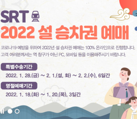 설날 기차표 예매 홈페이지(SRT, KTX)