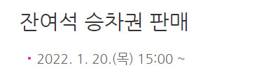 - KTX 잔여석 승차권 판매 : 1.13(목) 15시부터 역 창구, 홈페이지, 코레일톡 앱에서 판매