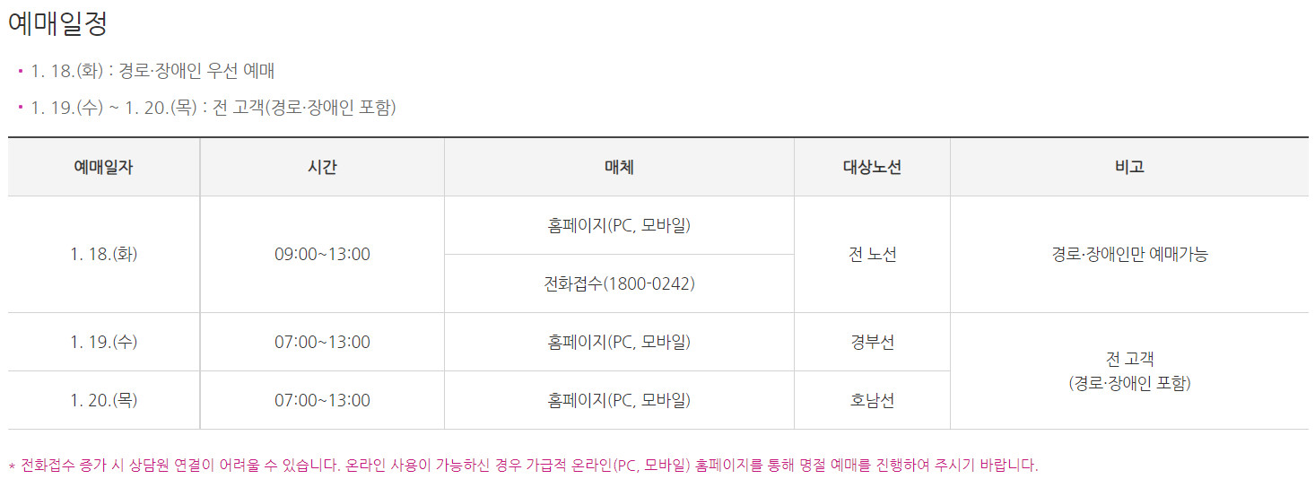 설날 기차표 예매 방법 및 주의사항