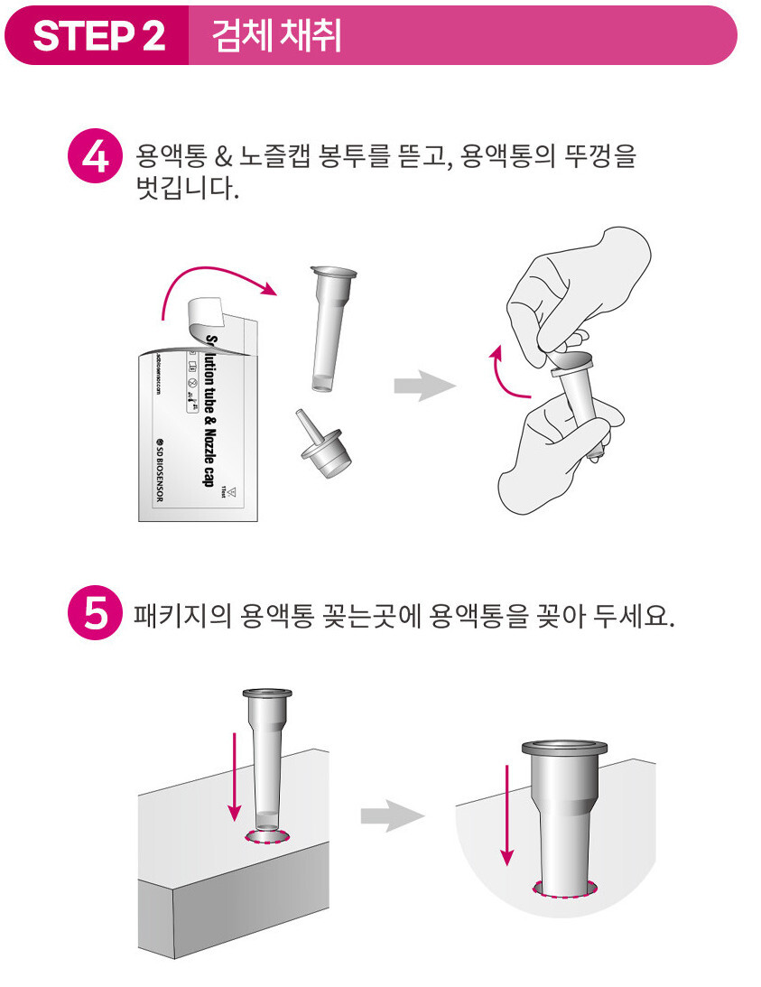 - 대부분의 자가진단키트 사용법은 비슷하나 약간씩 차이가 있으니 설명서를 참고바랍니다.