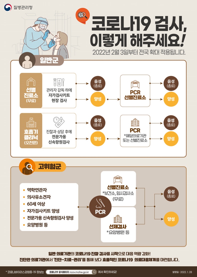이에 따라 2월 3일부터 전국적으로 코로나 검사방법이 변경되었습니다.
