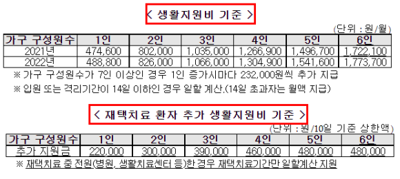 * 2022년 코로나 자가격리 지원금액이 인상되었습니다.